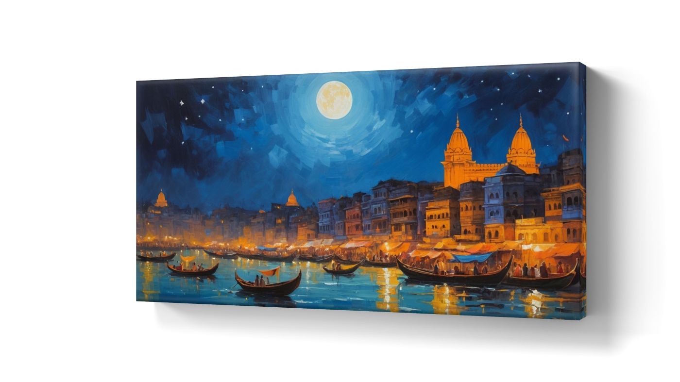 Banaras Painting On Canvas On Full Moon Night