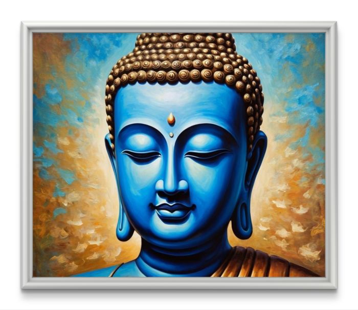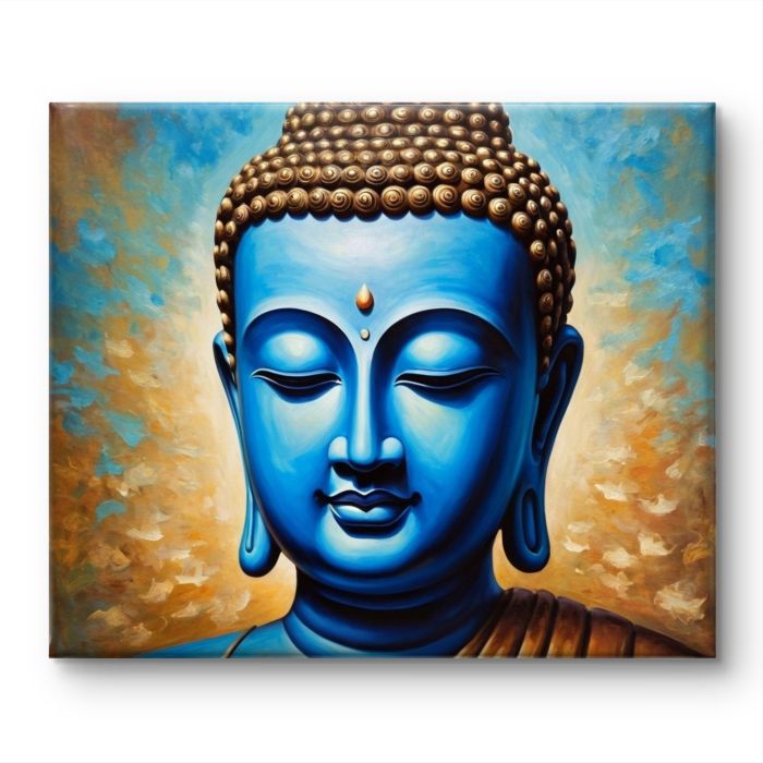 Enrich your living space with the meditative power of "The Infinite Calm," a stunning blue buddha painting that serves as a beacon of tranquility. This premium buddha canvas wall art features a masterful use of deep cerulean and sky-blue tones, expertly blended with golden highlights to create a glowing aura of peace that radiates from your walls.
