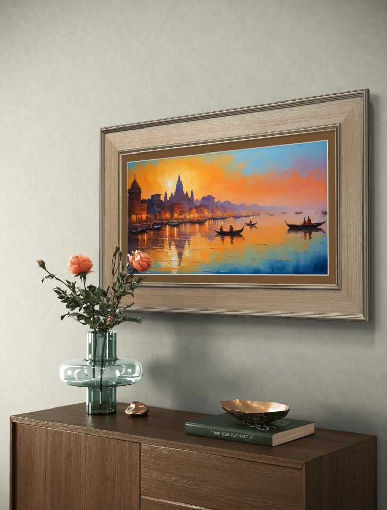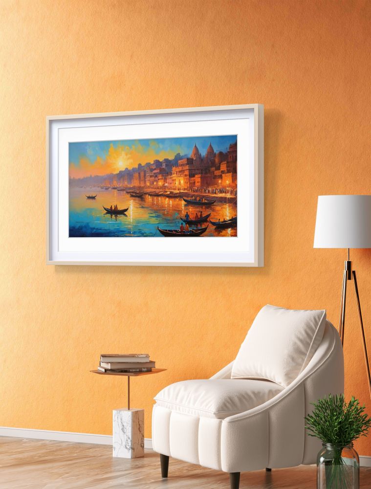 Budget friendly ready to hang wall art print of Banaras Ghat.